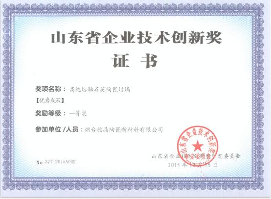 山東(dong)省企業技(ji)術創新獎(jiang)-優秀成果(guo)一等獎(高(gao)純熔🙆🏿融🥑️石(shi)英陶瓷👩👋欧美日韩人妻高清中文🧑🏽‍❤️‍💋‍🧑🏻996;‍❤️‍👨🏾坩(gan)埚)